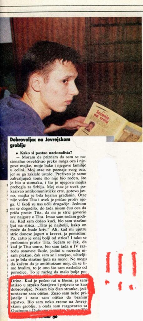 Što se tiče Vučića, on je negirao učešće u vojnim dejstvima tokom opsade Sarajeva, rekavši kako je iznad Sarajeva, kod Jevrejskog groblja, radio kao novinar.